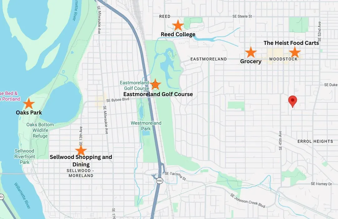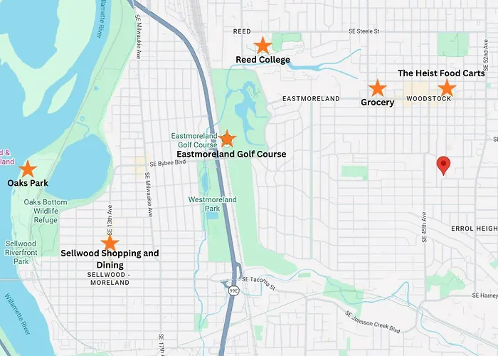 Coda Walkable Woodstock Guesthouse Portland has an equipped kitchenette, where an oven and a dishwasher are provided for a comfortable stay. East Morrison Street train station is 9 km away, and Southeast 52nd & Ogden bus stop is fairly close to Coda Walkable Woodstock Guesthouse Portland. The property features a patio on which guests can unwind.